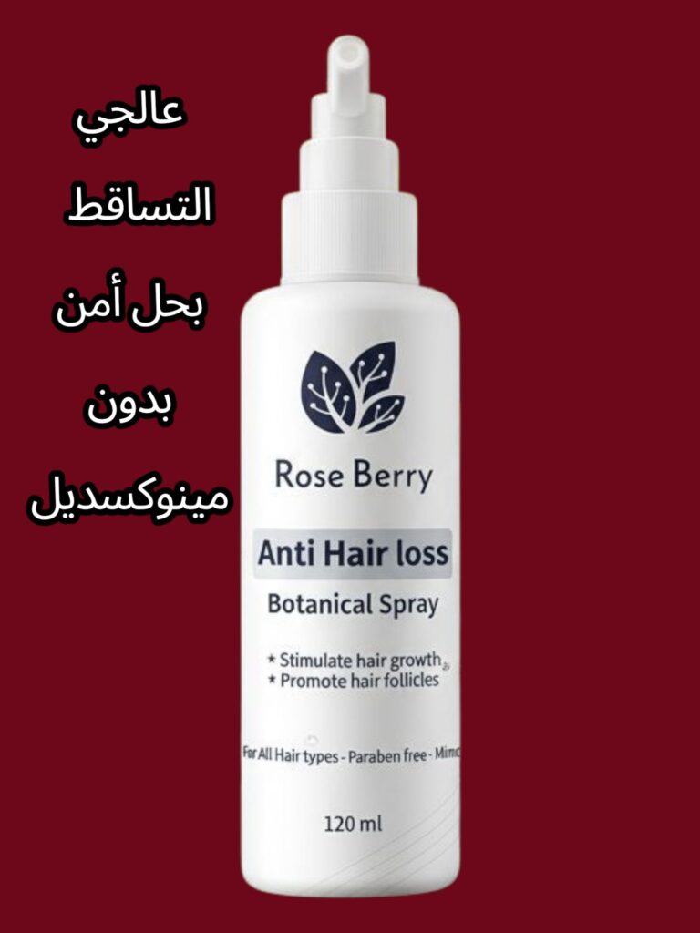 روزبيري Anti Hair Loss سبراي حل نهائي للتساقط الشديد والمتوسط، يقلل إفراز الهرمون المسبب للتساقط ويحفز نمو شعر جديد أقوى وأتقل👌بتركيبة متطورة آمنة.